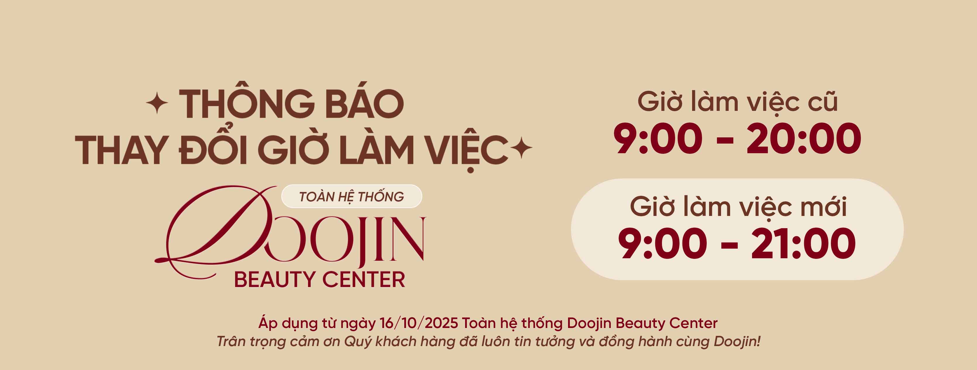 Nhằm mang đến sự thuận tiện tối đa cho quá trình trải nghiệm dịch vụ, Doojin Beauty Center xin thông báo thay đổi thời gian làm việc trên toàn hệ thống như sau:
